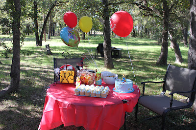 These next few are from his super cute Pooh birthday party that we had at my parents' house. They have a spectacular yard with a great play set. It was the Hundred Acre Woods. :)